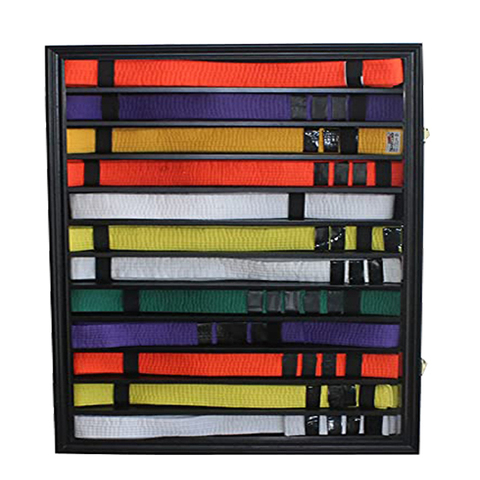 กล่องเก็บของเล่นศิลปะการต่อสู้คาราเต้เทควันโด,ชั้นวางของติดผนังสีดำ12แถวสำหรับเป็นของขวัญแสดงกรอบไม้แท้