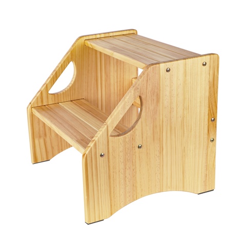 เก้าอี้บันไดไม้สองขั้นพร้อมแผ่นกันลื่นและมือจับเพื่อความปลอดภัยเก้าอี้ขั้นบันไดสองชั้นสำหรับเด็กและผู้ใหญ่
