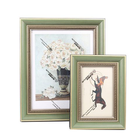 ชุดกรอบรูปไม้แข็งสีเงินแบบเรียบง่ายโบราณที่ทันสมัยกรอบตกแต่งโต๊ะผนังสีเขียวทำด้วยมือแม่พิมพ์ตกแต่งบ้าน