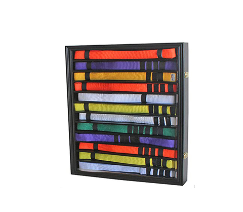 กล่องไม้สำหรับคาราเต้เทควันโด12แถว,เคสโชว์เงาเข็มขัดศิลปะการต่อสู้ทำจากไม้แข็งสีดำสำหรับเป็นของขวัญ