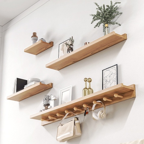 Estante de almacenamiento de pared de madera maciza Simple moderno nórdico muebles para el hogar Slipboard perforable fila de setas gancho estante adhesivo pared