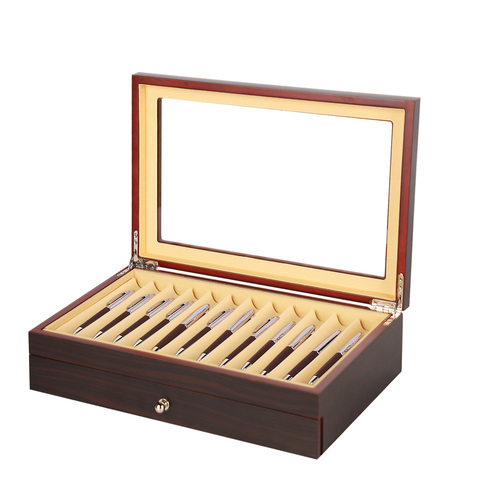 Organizador de bolígrafos de madera de dos pisos con 12 ranuras Estuche de exhibición de bolígrafos pintados con almacenamiento bloqueable