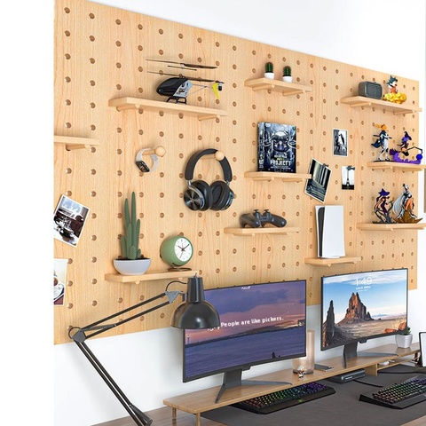 Pared Porche Den Wall Display Storage Tablero de clavos de madera Pared con estante Cubierta de exhibición modular Decoración del hogar Materiales de construcción
